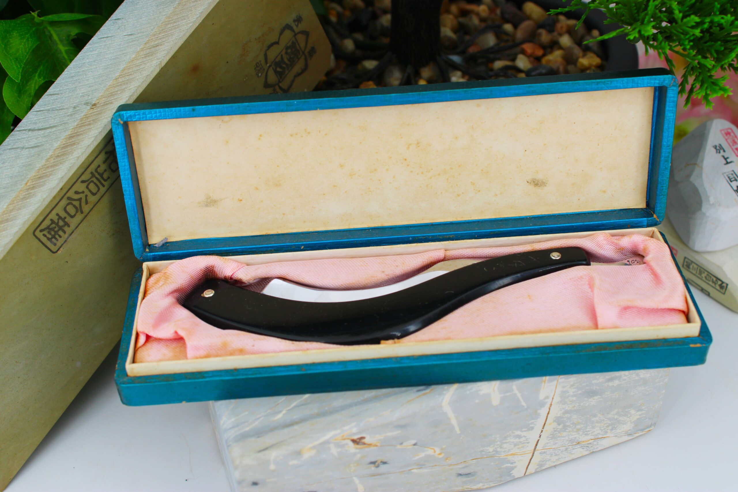 Il a conçu des rasoirs qui ont été construits par de grandes entreprises avec son nom dessus, des rasoirs comme celui-ci ont été fabriqués par Kikuboshi, Diamond Hayashi et d’autres fabricants.